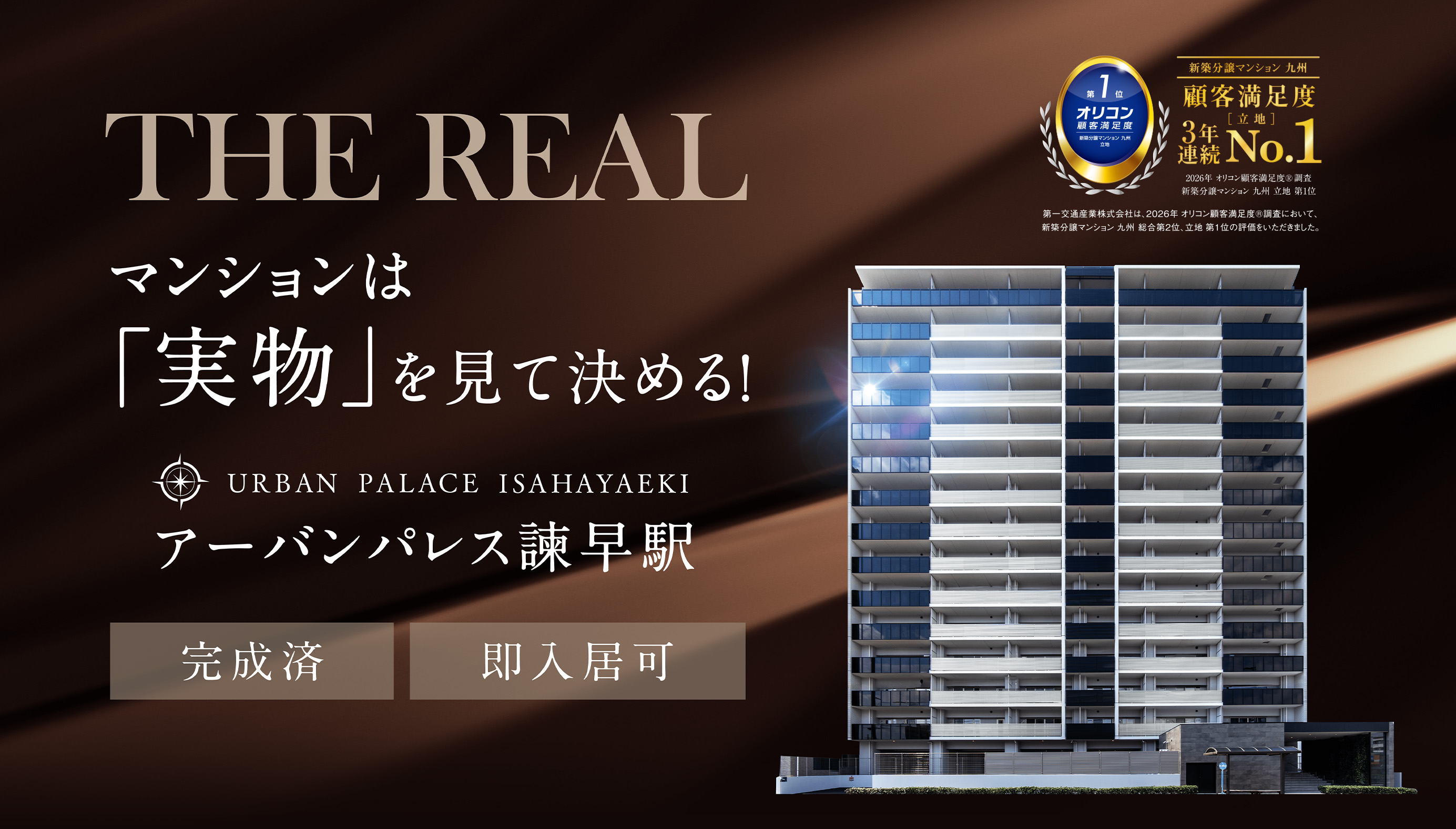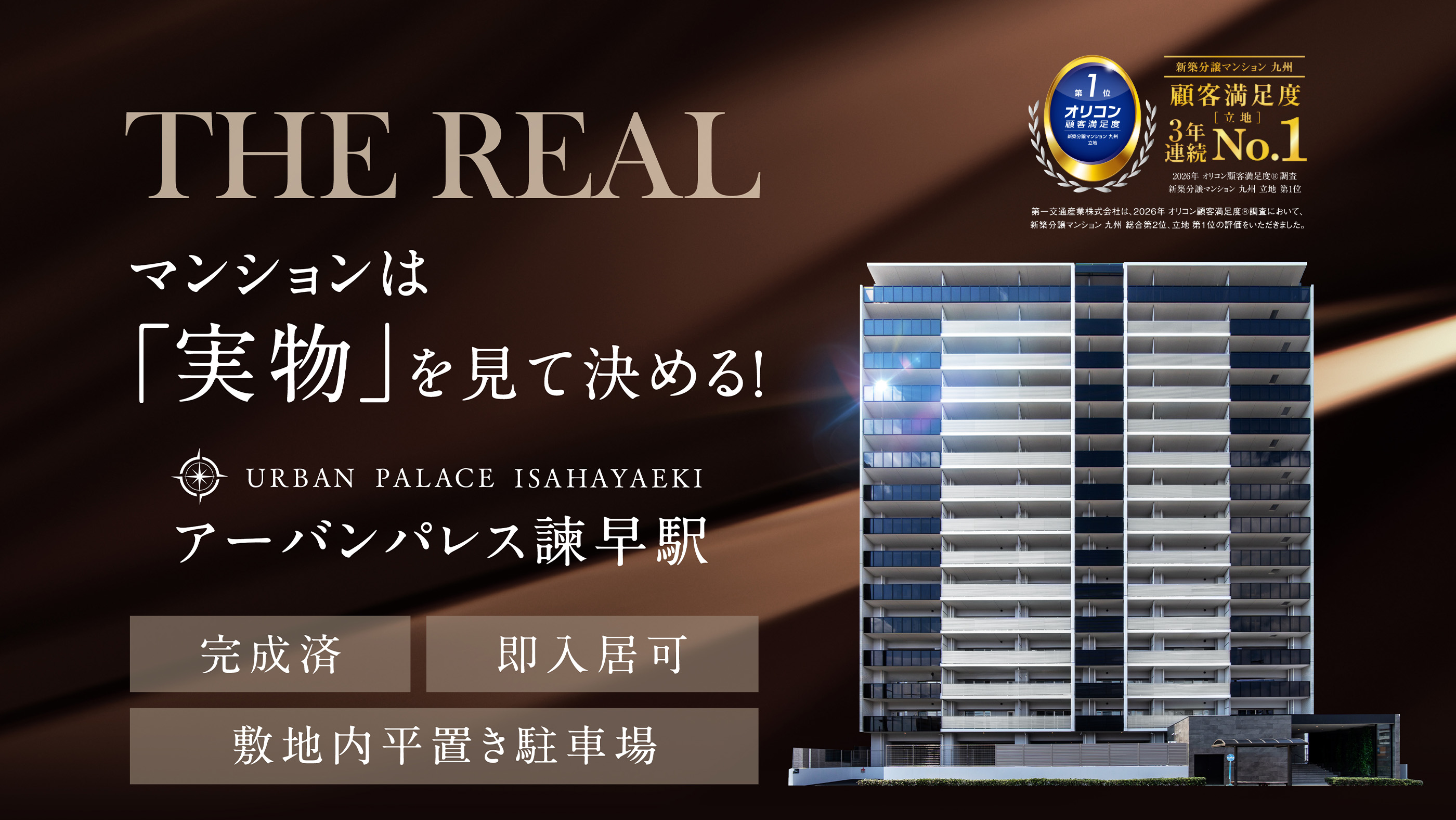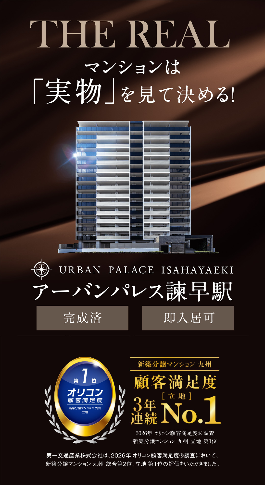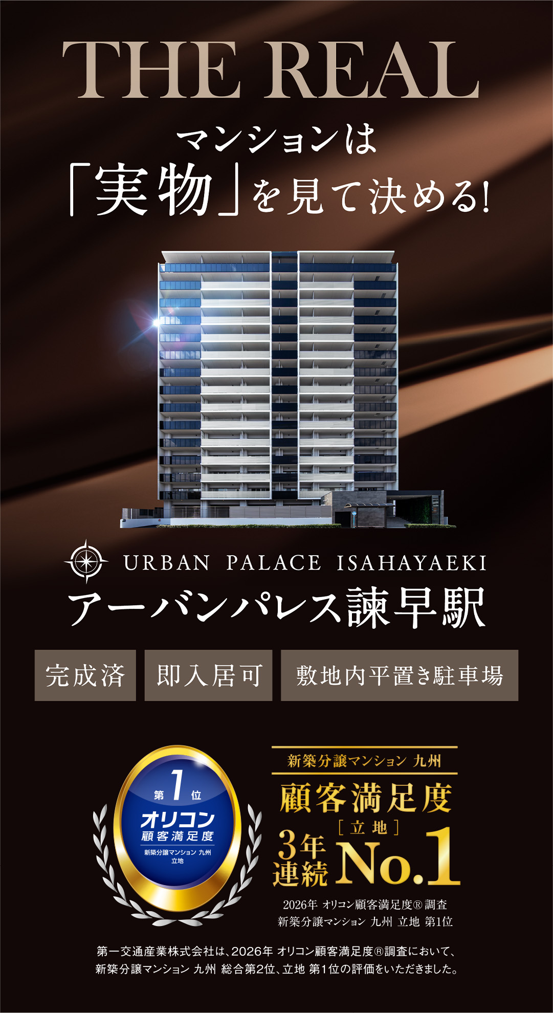 第一交通産業株式会社は、2026年オリコン顧客満足度調査において、新築分譲マンション九州 総合2位、立地 3年連続第1位の評価をいただきました。
